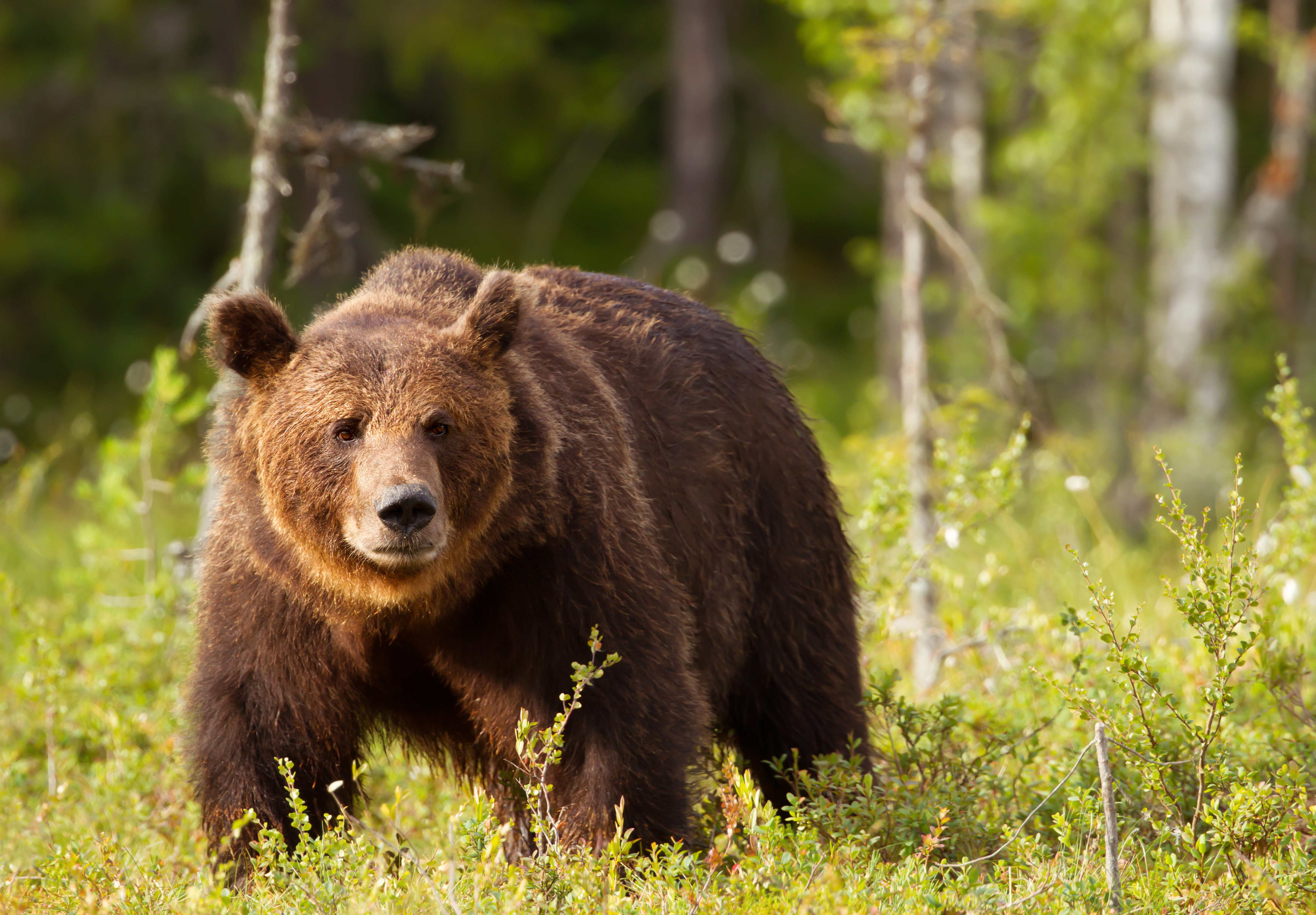 Image précédente Image suivante European brown bear male in boreal forest Close-up of European brown bear (ursos arctos) male in boreal forest, Finland.